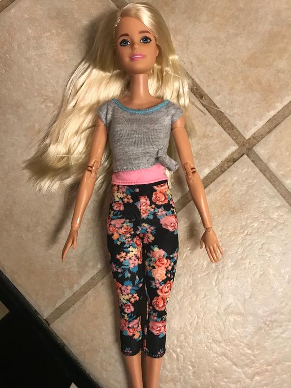 Barbie Made To Move Doll Blonde Floral Yoga Pants And Gray Top