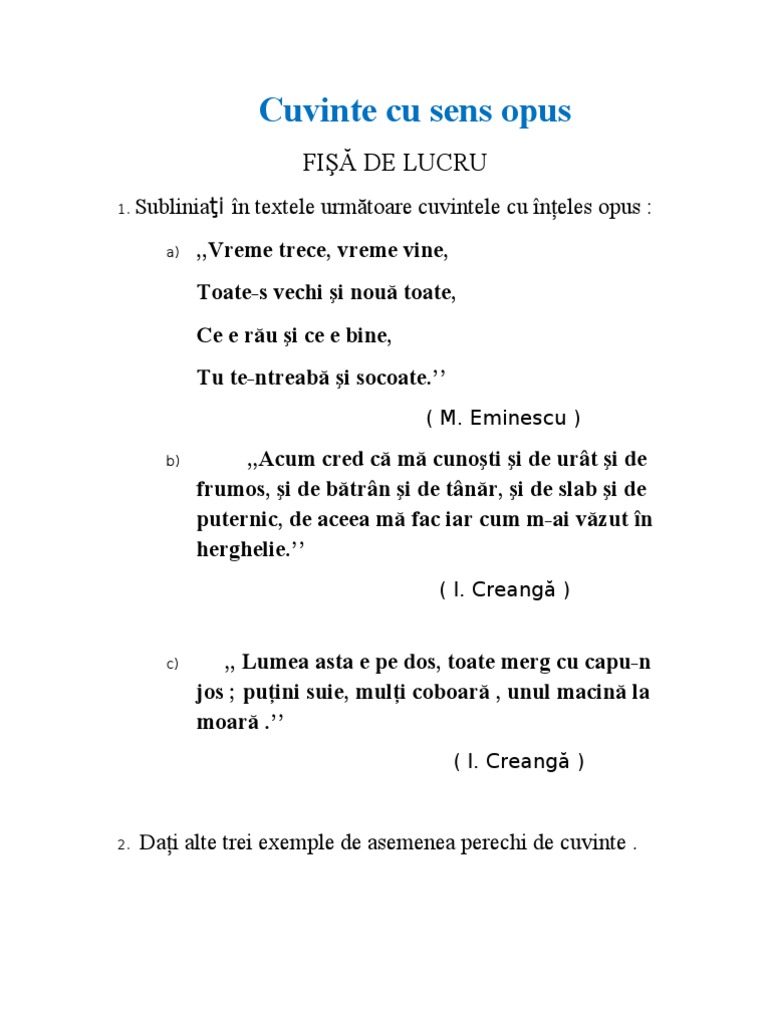 Cuvinte Cu Sens Opus
