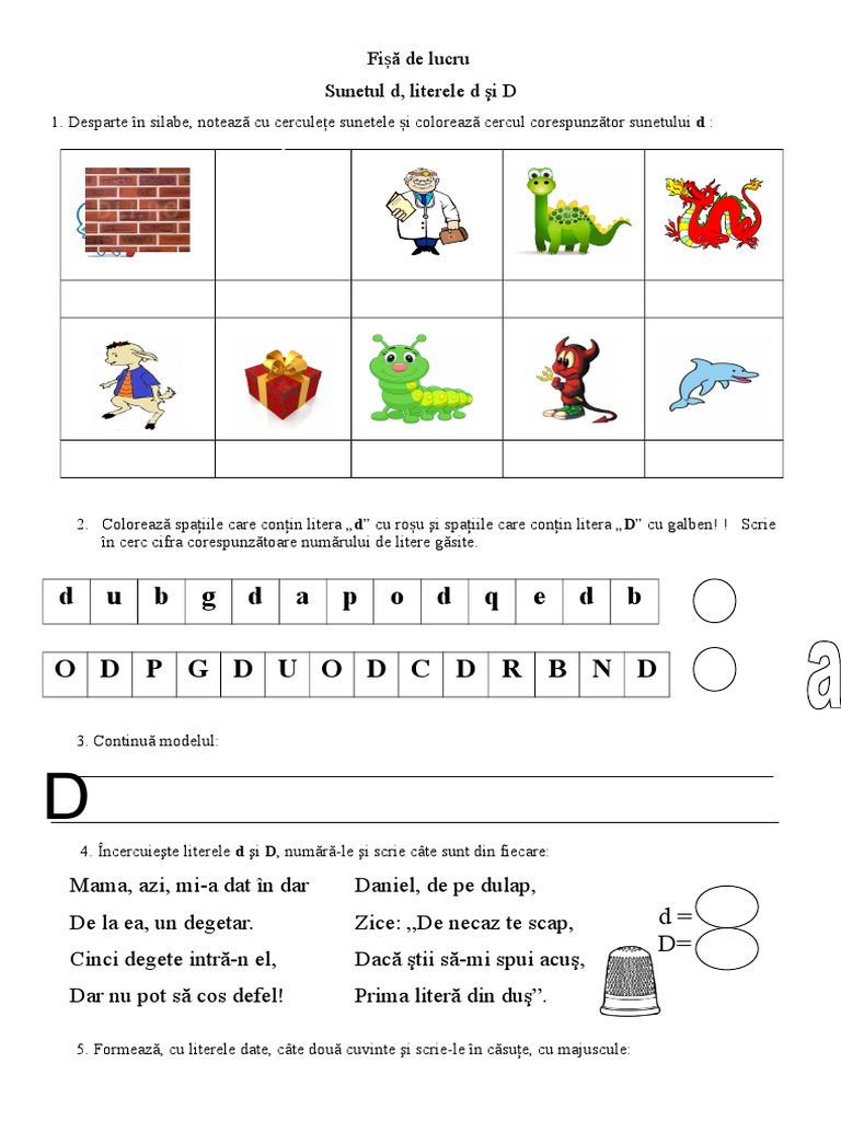 Fisa De Lucru Sunetul Si Literele D D